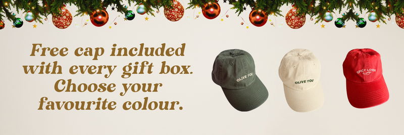 Gift box with Artisan products and three caps displayed, with text about a free cap offer.