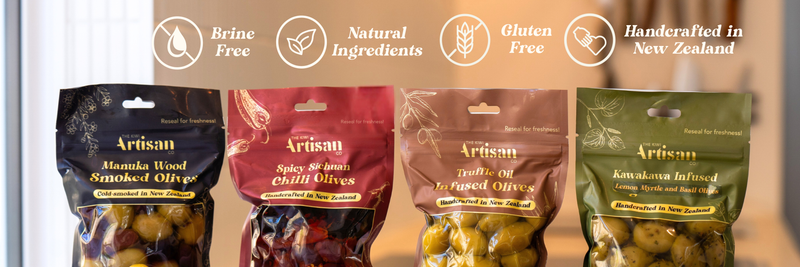 Enjoy our smokey, truffle, chilli and kawakawa infused olive range, handcrafted in small batches from premium ingredients.
