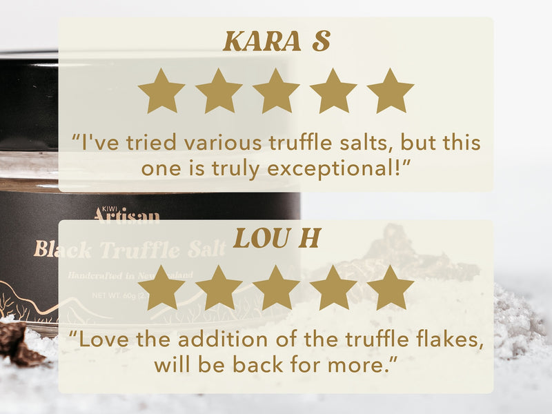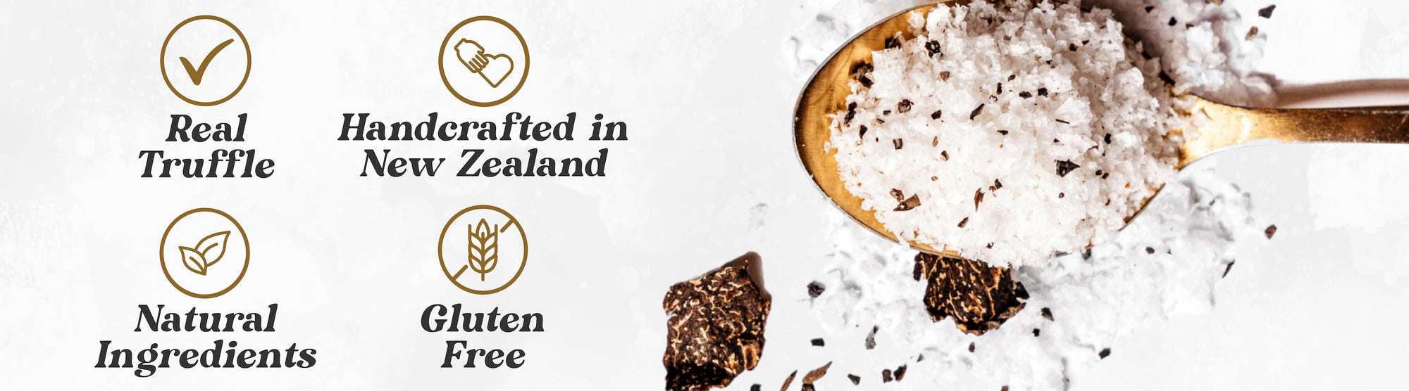 Real New Zealand black truffle blended with locally harvested Marlborough sea salt.