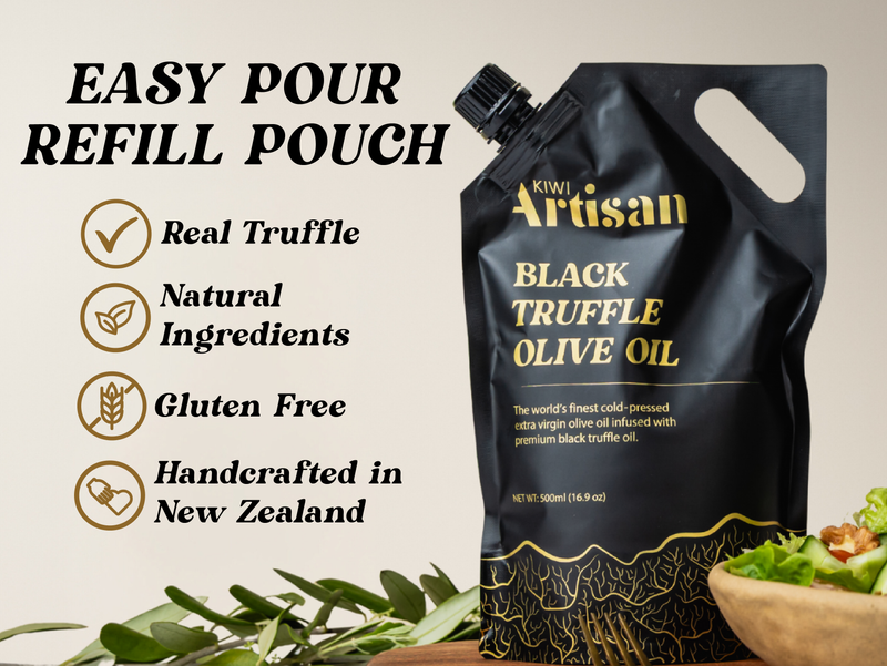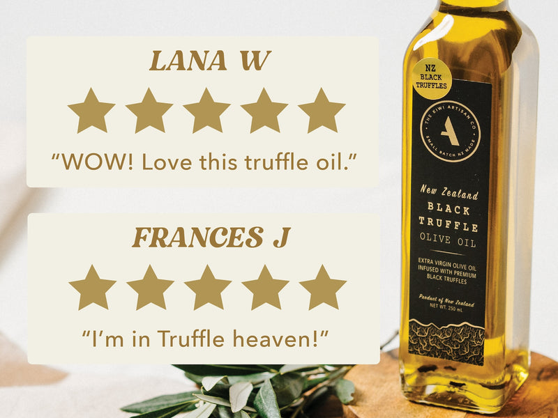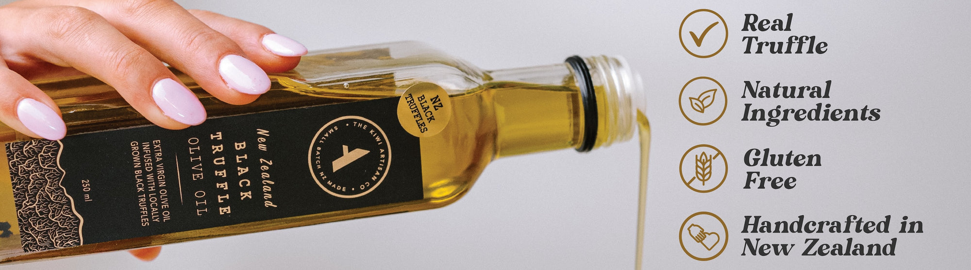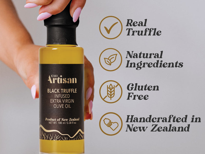 New Zealand's finest Truffle Oil.  Crafted from New Zealand grown black Périgord truffles and infused with extra virgin olive oil pressed across the North Island. Made with real truffle, no artificial flavours or chemicals. Deliciously smooth and luxurious without that harsh overpowering aroma.  The perfect addition to elevate any dish.